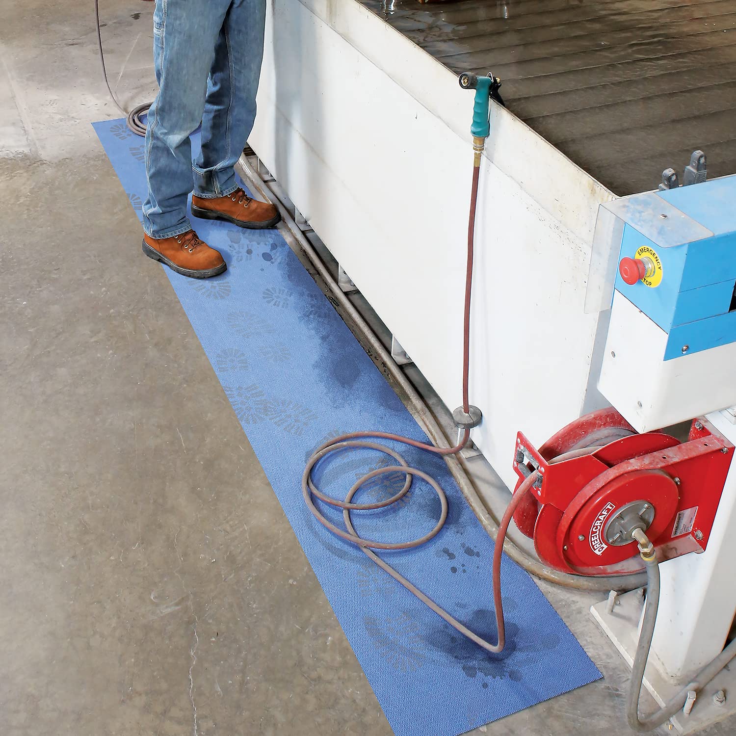 - STAYS IN PLACE industrial absorbent Grippy mat stays exactly where you put it with no shifting, bunching up or flipping over to prevent slips, trips and falls in workstations and around machinery