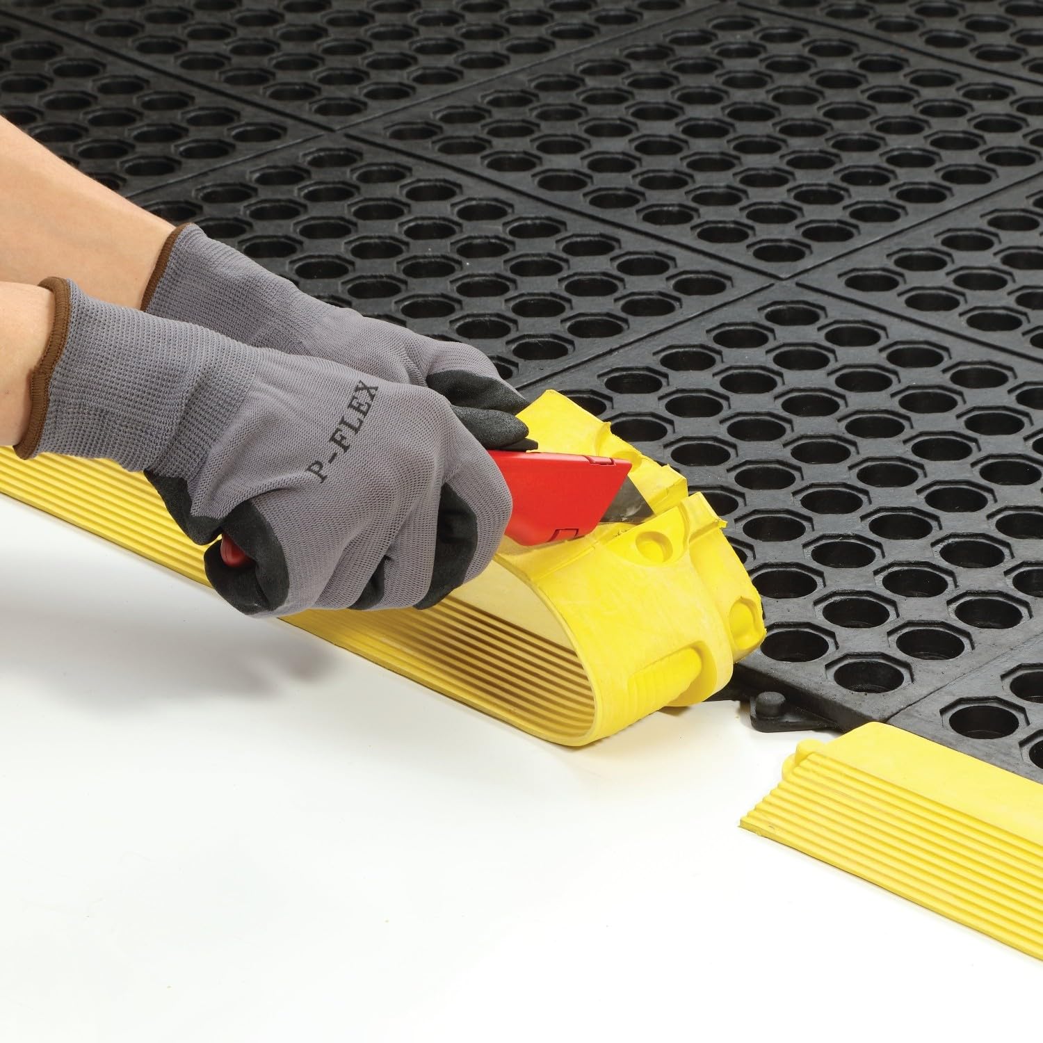 - BEVELED DESIGN reduces stumbling and dolly-wheel snags by smoothing the transition from floor to mat