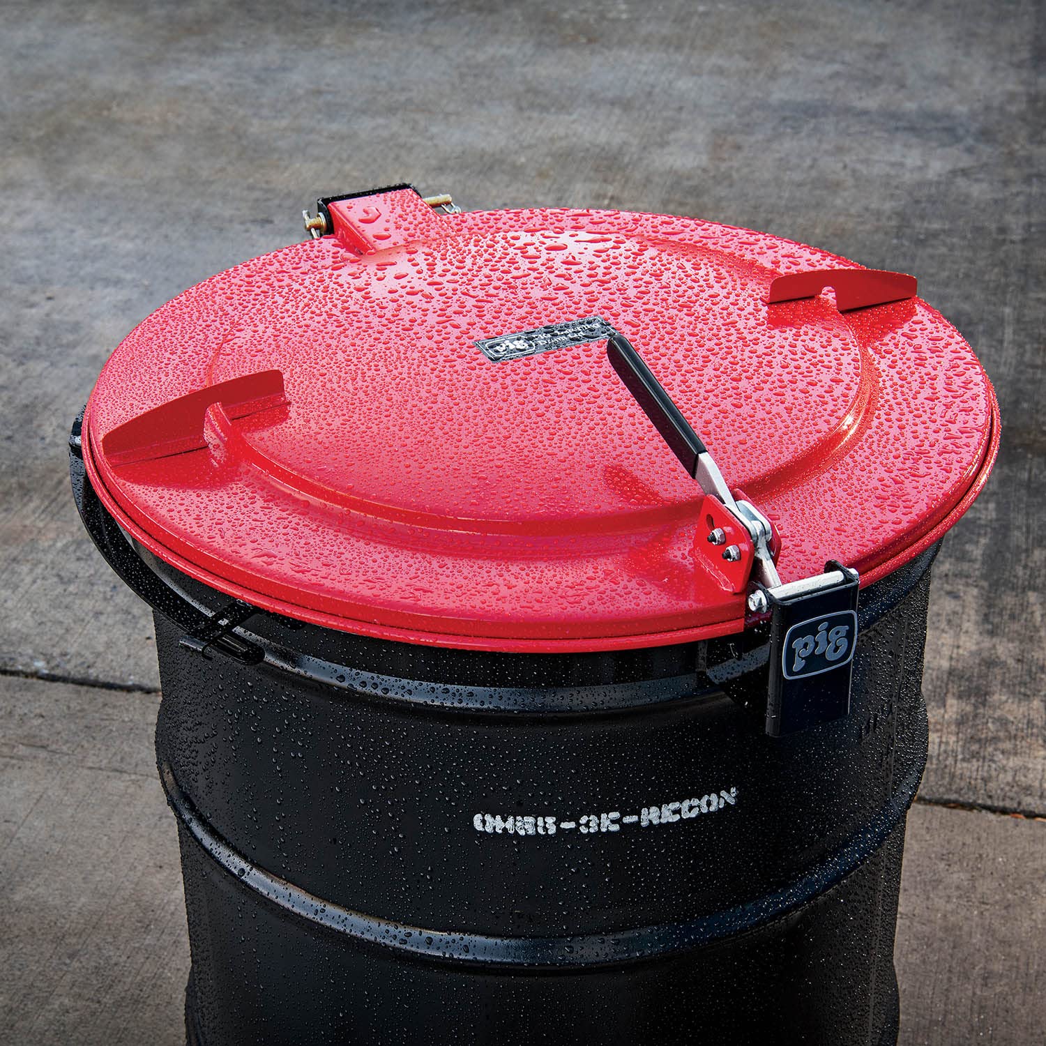 PIG Drum Lid | Outdoor Latching Drum Lid with Fast-Latch Ring | For 55 gal Steel Drums | Red | DRM1111-RD