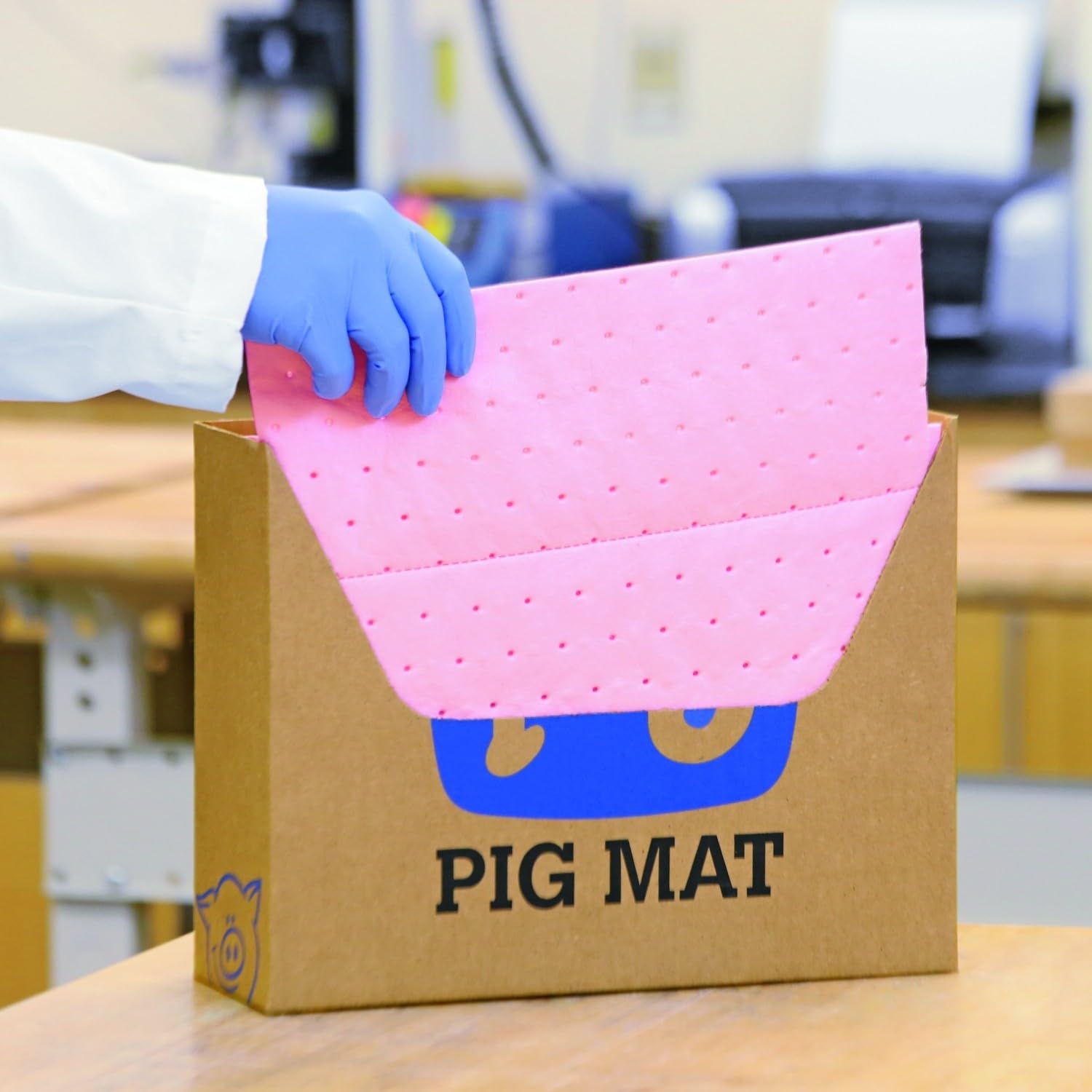 PIG Hazmat Chemical Absorbent Mat Pad in Box Dispenser| 10" W x 13" L | Absorbs 2.5 gallons | Box of 25 Pads | Heavyweight | PMB30618—