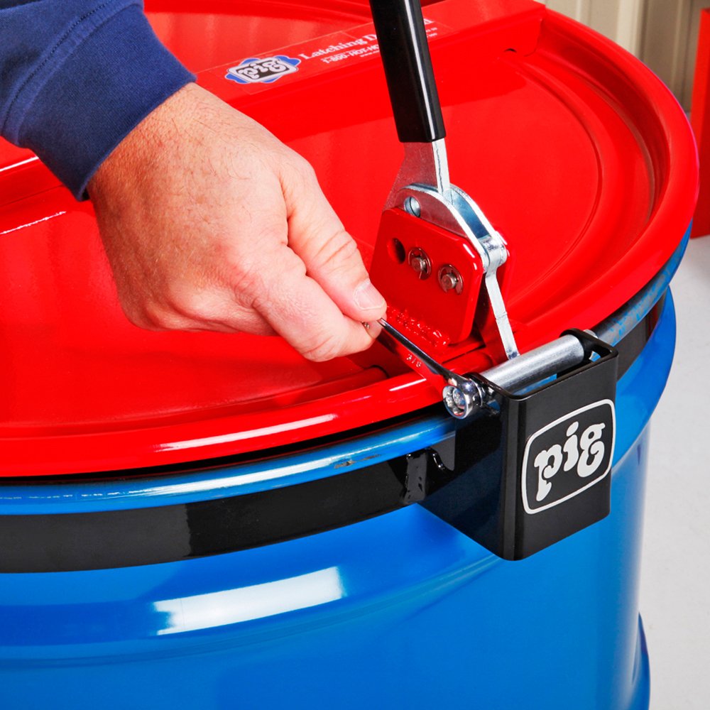 PIG Latching Drum Lid with Fusible Plugs | For 55 Gallon Steel Drums | Bolt-Ring | FM-Approved | 26" L x 23" W x 4" H | Red | DRM1065-RD